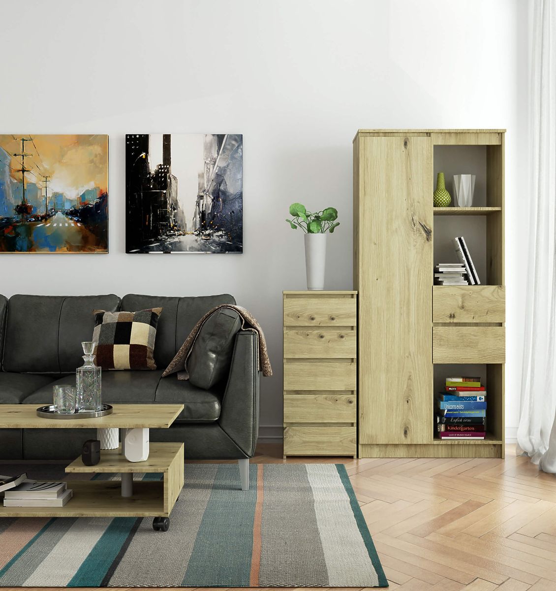 Kommoden sind eine beliebte Möbelart, die neben dem Bett platziert wird. Auf der Platte befindet sich meist eine Lampe, während im Inneren Gegenstände aufbewahrt werden, die Entspannung und Schlaf erleichtern. Personen, die eine elegante Kommode suchen, sollten auf die Kommode CL5 40 cm in der Farbe Eiche Artisan achten. Sie wird in jedem Schlafzimmer schön zur Geltung kommen. Sie kann auch im Kinderzimmer platziert werden.