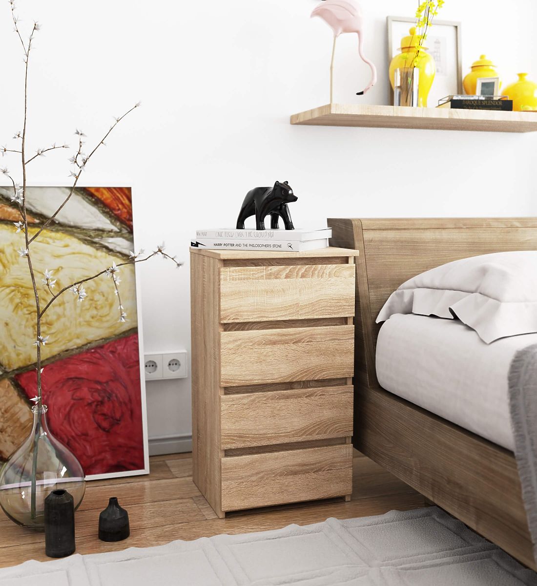 Kommoden sind ein beliebter Möbeltyp, der neben dem Bett platziert wird. Auf seiner Platte steht meist eine Lampe, während im Inneren Gegenstände zur Erleichterung von Ruhe und Schlaf aufbewahrt werden. Personen, die eine elegante Kommode suchen, sollten auf die Kommode CL4 40 cm in der Farbe Eiche Sonoma achten. Sie wird in jedem Schlafzimmer schön zur Geltung kommen. Sie kann auch im Kinderzimmer platziert werden.