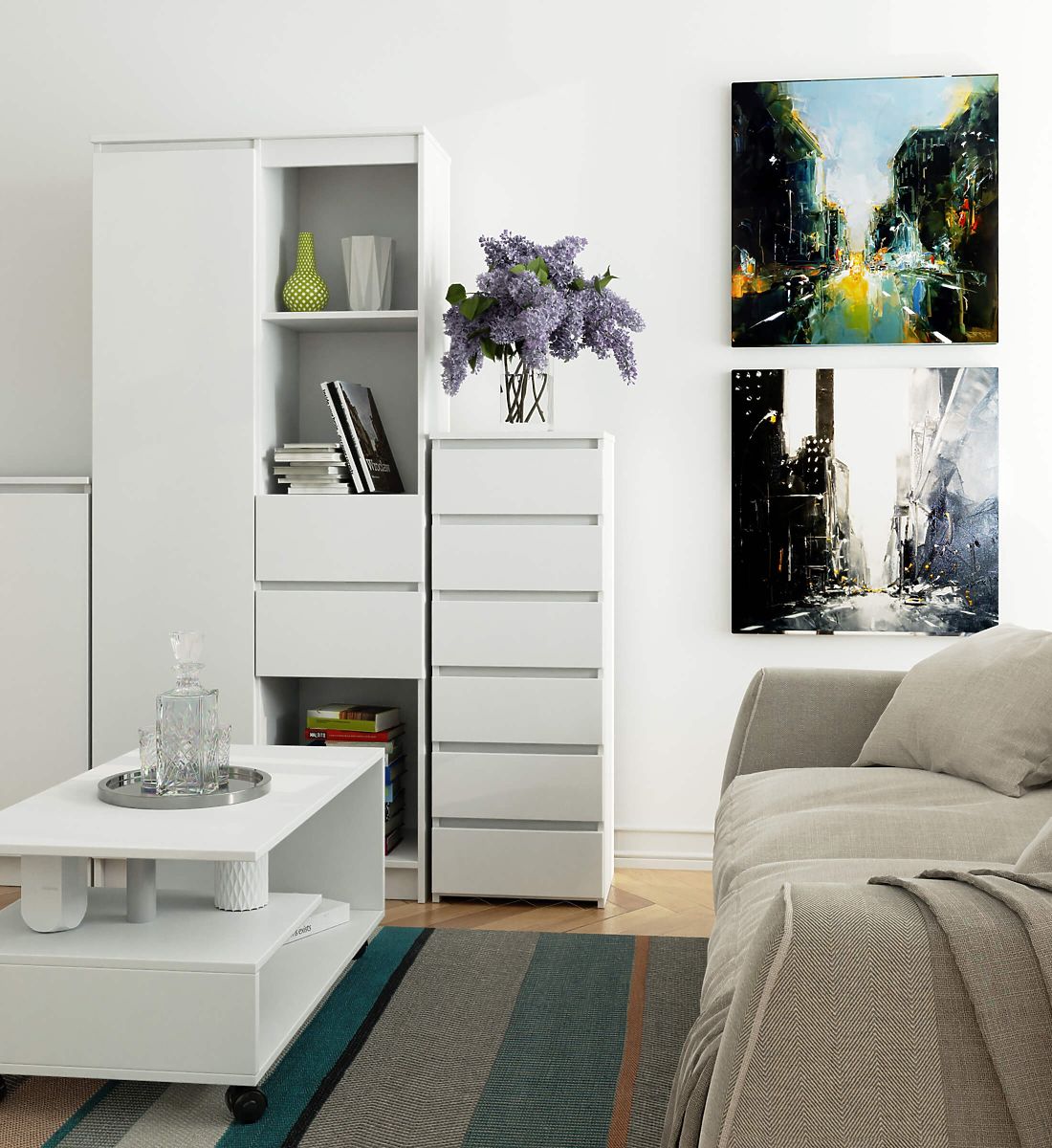 - Elegantes Aussehen - die Kommode ist einfach in der Form und zeichnet sich durch eine stilvolle weiße Farbe aus,
