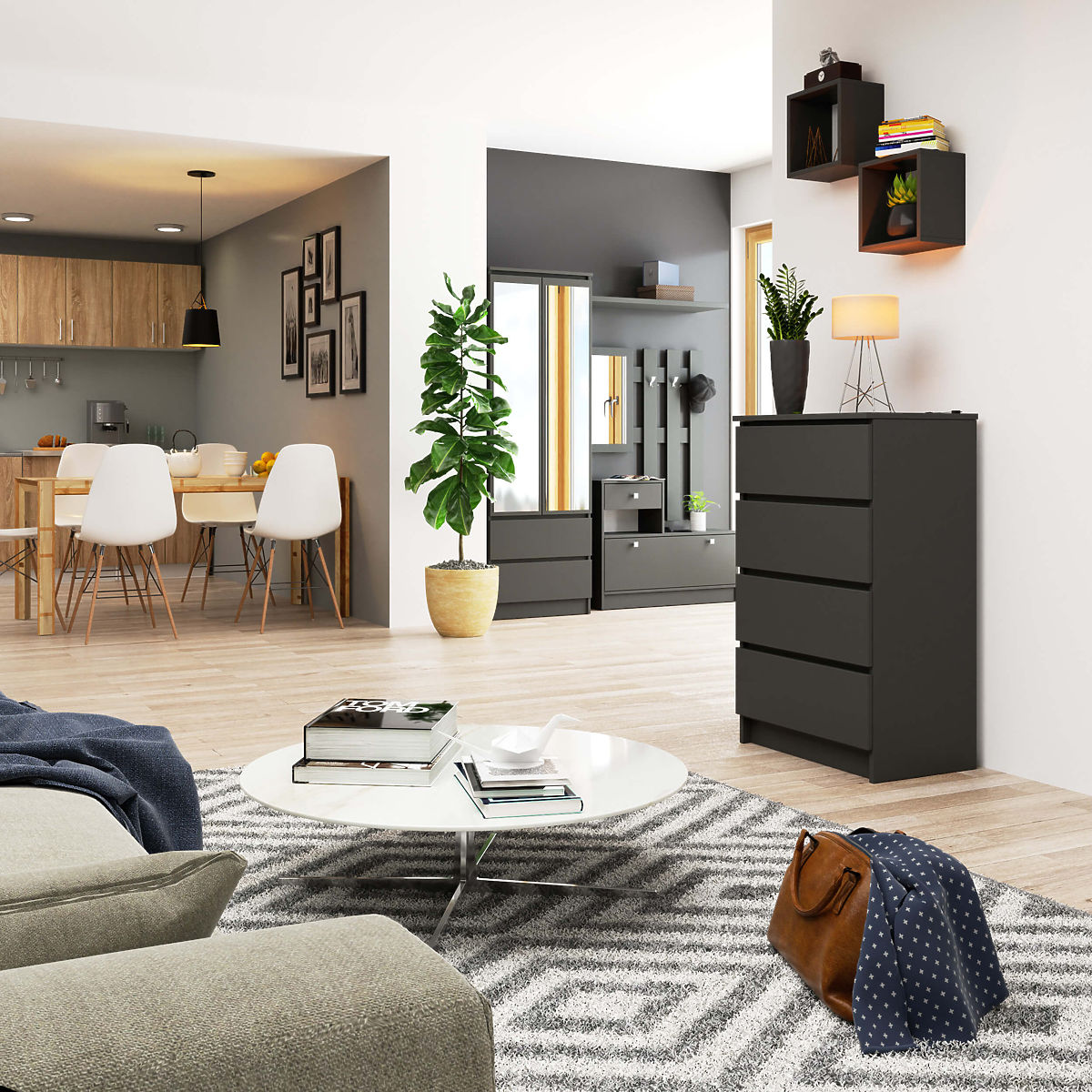 Kommode mit 4 Schubladen in Graphit Grau, zur Selbstmontage. .. mehr