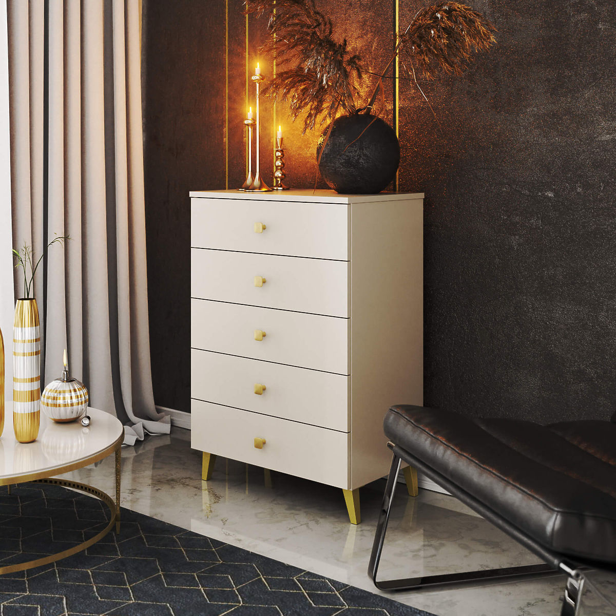KOMMODE MOBI 5-SCHUBLADEN KASCHMIR GOLD