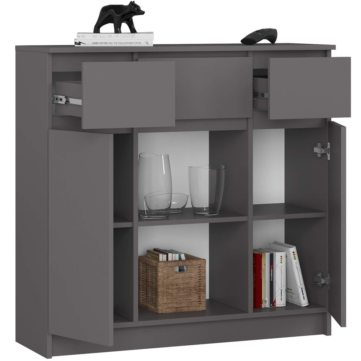 Kommode mit 2 Türen und 3 Schubladen in Graphit Grau. .. mehr