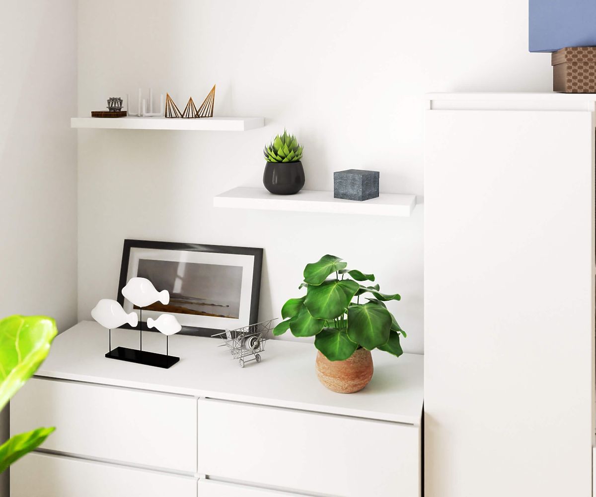 Das Regal PS-3 mit einer Länge von 60 Zentimetern in Weiß ist eine universelle Wahl, die in jedes Interieur passt.