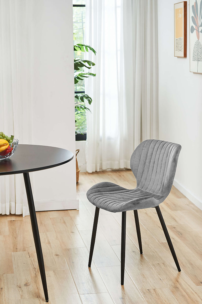 Modernes Design und aktuelle Trends zeigen, wie großartig und praktisch Velours als Material ist. Diese Serie unserer Stühle möchten wir Ihnen als Ergänzung für moderne und stilvolle Innenräume anbieten. Der Stuhltyp SJ.17 hat schwarze Metallbeine. Diese Beine passen sowohl in klassische als auch in moderne Arrangements. Die Velours-Polsterung umgibt den Sitz und die Rückenlehne, wodurch der Stuhl angenehm zu berühren ist und an Sommertagen keinen Komfortverlust verursacht. Die beim Polstern verwendeten Nähte verleihen ein noch eleganteres Aussehen und einen zeitlosen Stil.Technische Daten: