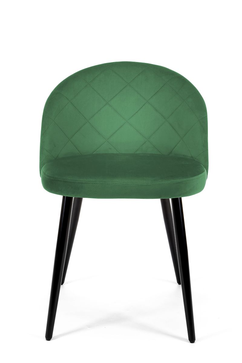 Das Set aus Samtstühlen findet viele Anwendungen in modernen Arrangements. Sie eignen sich hervorragend als Stühle für Esszimmer, Büros, aber auch für Kosmetik- oder Friseursalons. Das Produkt hat eine Polsterung aus weichem Samtstoff, eine abgerundete Rückenlehne mit gesteppter Naht und Metallbeine in schwarzer Farbe.