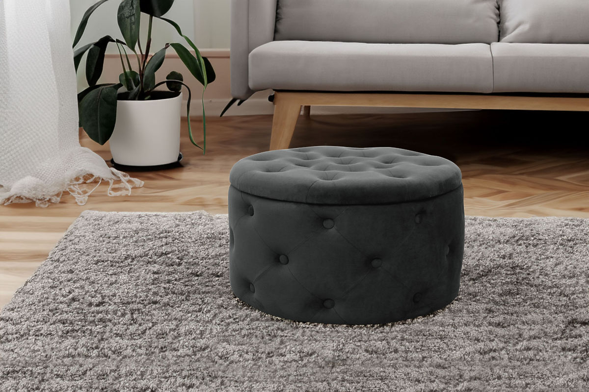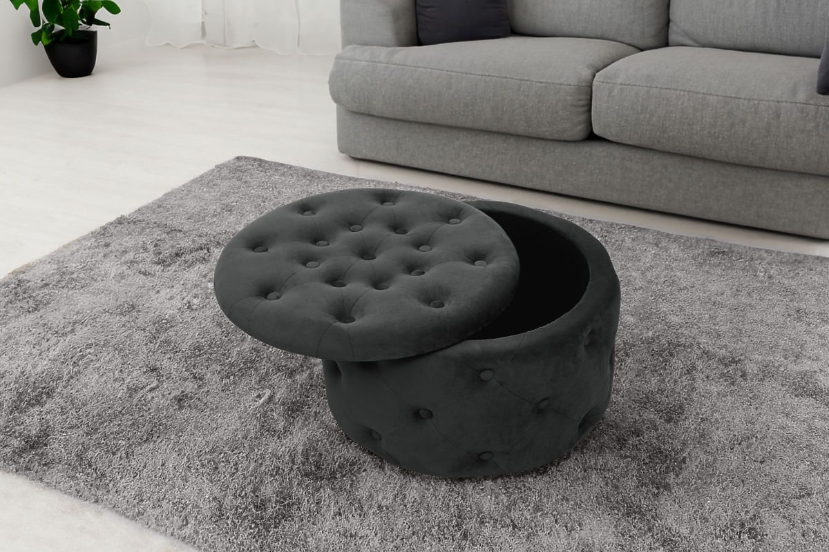 Ein Fußhocker oder Sitzkissen ist eine hervorragende Ergänzung für das Wohnzimmer oder Schlafzimmer. Dank ihm können müde Füße nach einem langen Tag entspannen, und wenn das Sitzkissen aus weichem Velours gefertigt ist, verstärkt dies das angenehme Gefühl der Entspannung. Das moderne Aussehen wird durch die Steppung ergänzt, die einen eleganten Stil verleiht. Der aufklappbare Deckel bietet Zugang zum Stauraum, in dem wir Gegenstände aufbewahren können, die nicht für den täglichen Gebrauch benötigt werden.Spezifikationen: