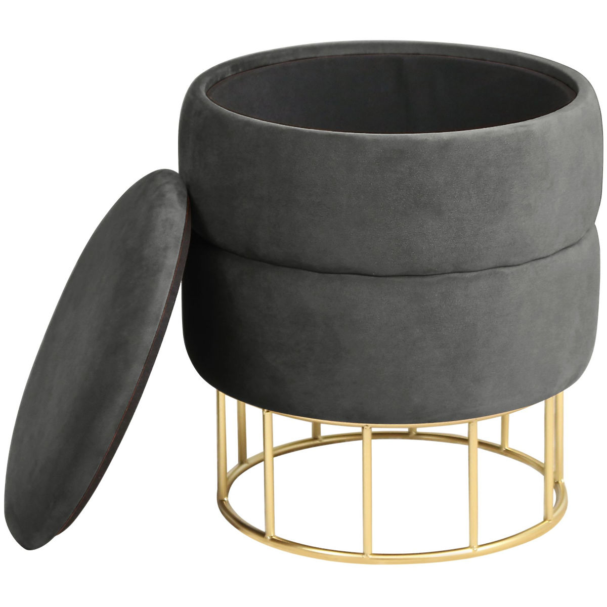 Pouf mit Stauraum und goldenen Metallbeinen. .. mehr