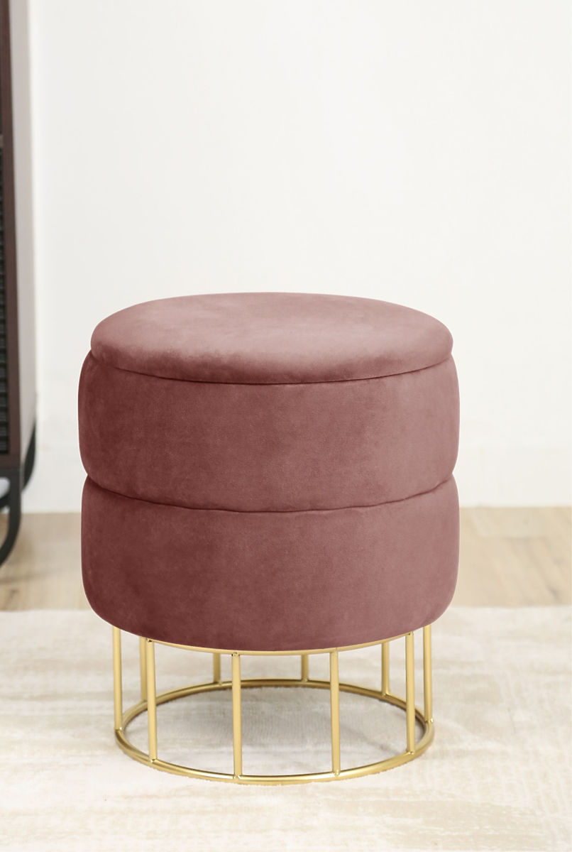 Runder Pouf mit Stauraum und goldener Basis. .. mehr