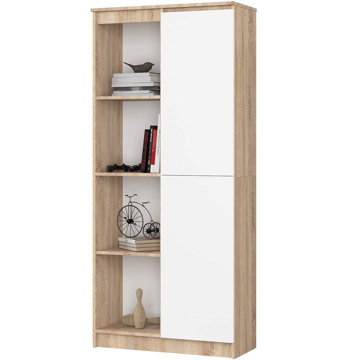 Büroregal mit 8 Regalböden und einer Tür in Eiche Sonoma und Weiß. .. mehr