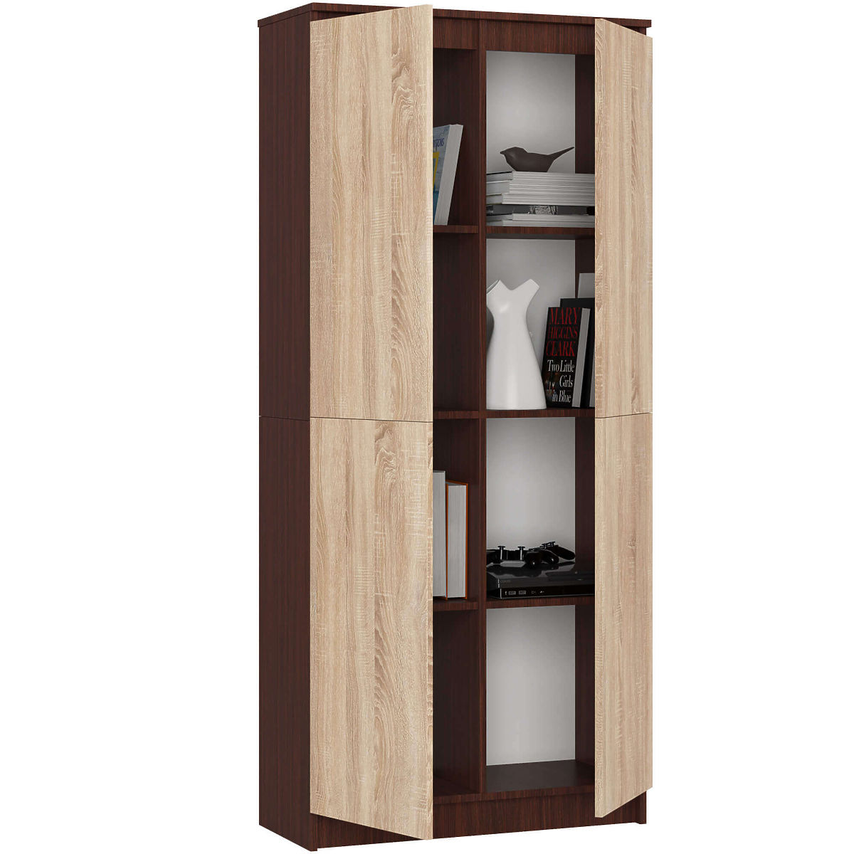 GESCHLOSSENES REGAL - BÜROSCHRANK CLP 80cm 2 TÜREN 8 REGALBÖDEN Farbe Wenge Fronten Sonoma