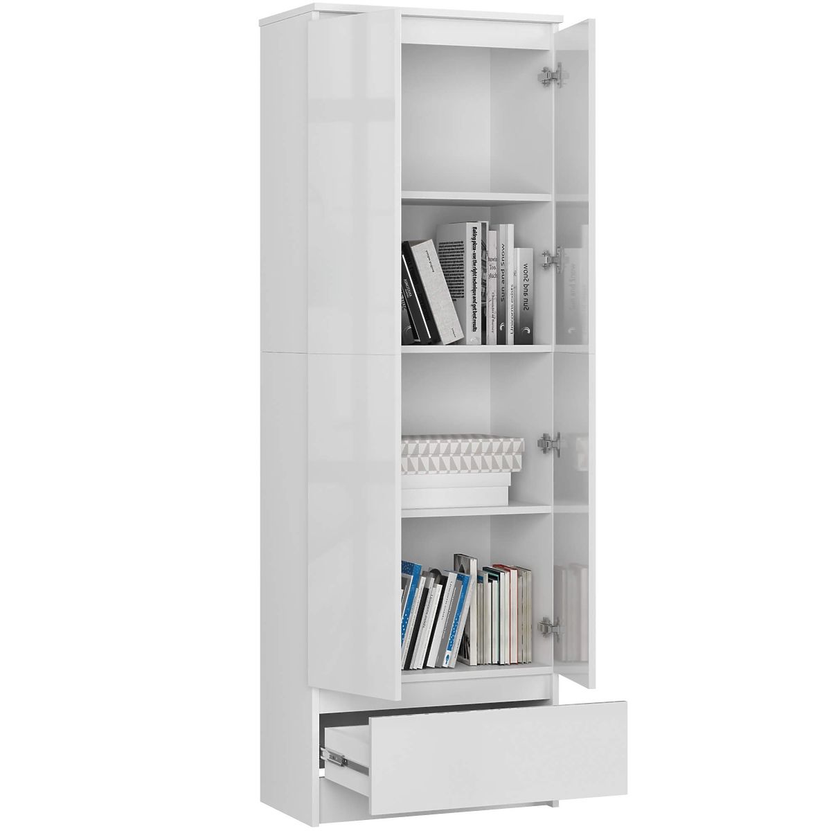 GESCHLOSSENE BIBLIOTHEK CLP 60cm 1 SCHUBLADE 2 TÜREN Korpus - Weiß | Fronten - Weiß Hochglanz