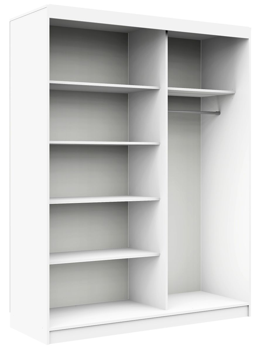 Der Schiebeschrank 150 cm ist eines der Elemente, die Teil des Möbelsystems CLP sind, was die Erstellung eines kompletten Sets ermöglicht, das wir zur Ausstattung eines oder mehrerer Schlafzimmer nutzen können. Zudem wurde auf eine ästhetische Fertigstellung des Produkts durch die Verwendung von ABS-Kanten für die Kantenumleimung geachtet.