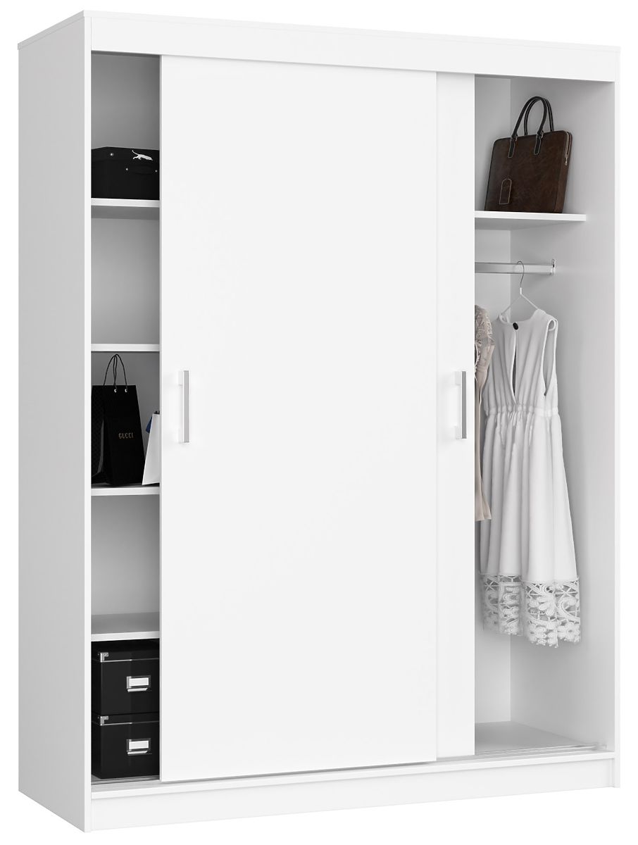 Weiße Möbel sind in letzter Zeit sehr beliebt und passen perfekt in moderne Innenräume. Daher darf ein Schrank in dieser Farbe in unserem Angebot nicht fehlen. Es ist ein funktionales Möbelstück für zwei Personen. Der 150 cm CLP Schrank eignet sich sowohl für Schlafzimmer und Wohnzimmer als auch für den Salon. Er überrascht mit seiner hohen Verarbeitungsqualität.