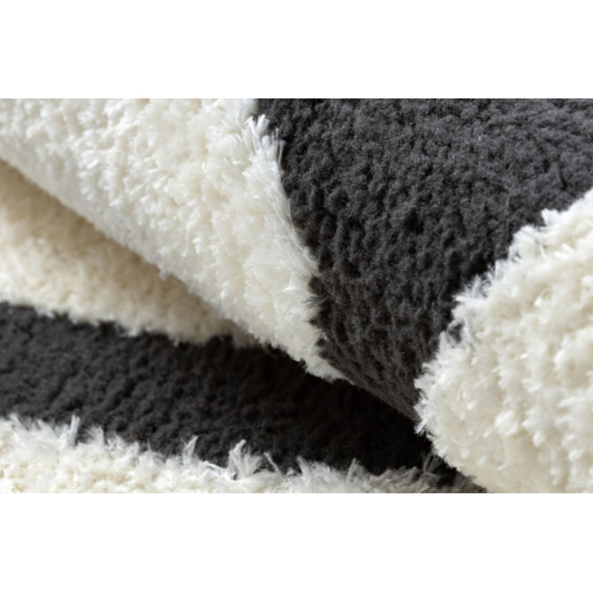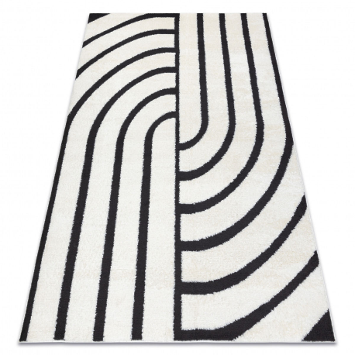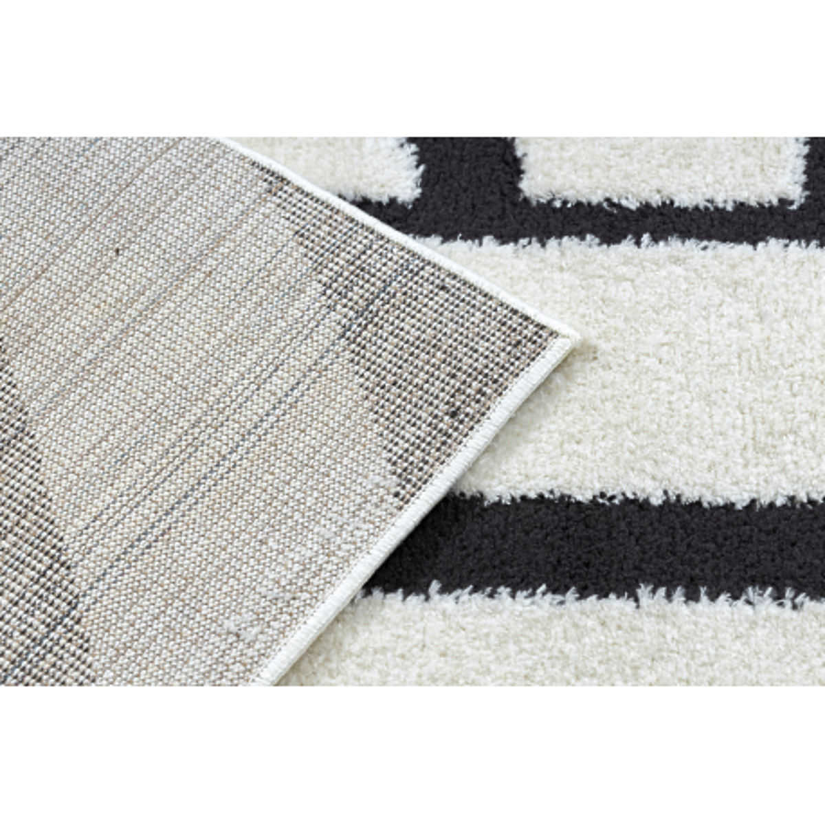 Rechteckiger Teppich mit geometrischem Design in Creme und Schwarz. .. mehr