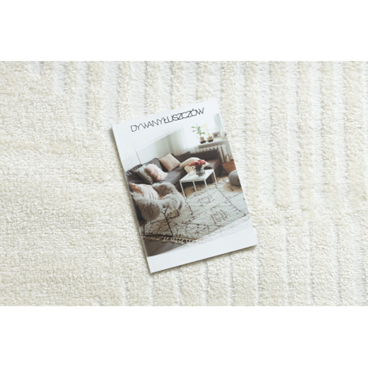 Bringen Sie einen Hauch moderner Eleganz in Ihr Interieur mit dem rechteckigen Teppich MODE 8589. Sein geometrisches Muster in sanftem Creme erhellt jeden Raum und verleiht ihm einen raffinierten und stilvollen Charakter. Der Teppich ist ideal für das Wohnzimmer, Schlafzimmer oder Arbeitszimmer, wo er eine angenehme und harmonische Atmosphäre schafft. Er ist aus 100% Polyester gefertigt, was für Haltbarkeit, einfache Pflege und lange Lebensdauer sorgt. Die Dicke von 15 mm bietet ein komfortables Gefühl unter den Füßen, während das Gewicht von 1,8 kg/m² Stabilität und Festigkeit des Teppichs auf dem Boden gewährleistet. Der cremefarbene Ton und das moderne geometrische Motiv lassen sich leicht mit verschiedenen Einrichtungsstilen und Accessoires kombinieren.