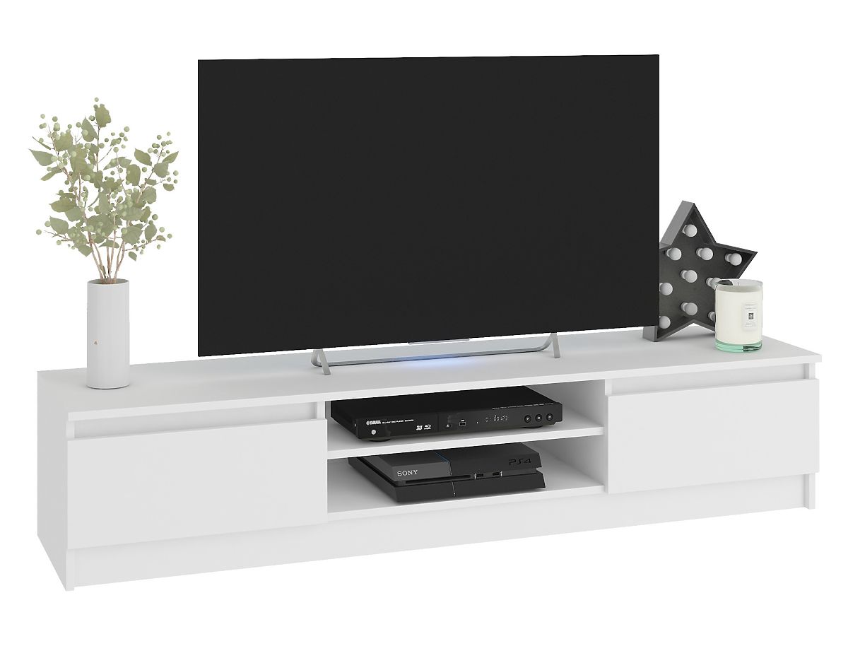 Der TV-Schrank und die Hängeschränke in Weiß passen hervorragend zu einem modernen Interieur. Der Farbton des klassischen Weiß ist so universell, dass das Möbelset sowohl in einem Raum mit Pastellfarben als auch in einem Wohnzimmer mit Wänden oder Teppichen in dunkleren Tönen effektvoll aussieht. Die Möbel sind aus laminierten Platten mit ABS-Kante gefertigt, die gegen Abrieb, Kratzer und langfristige Nutzung beständig sind.