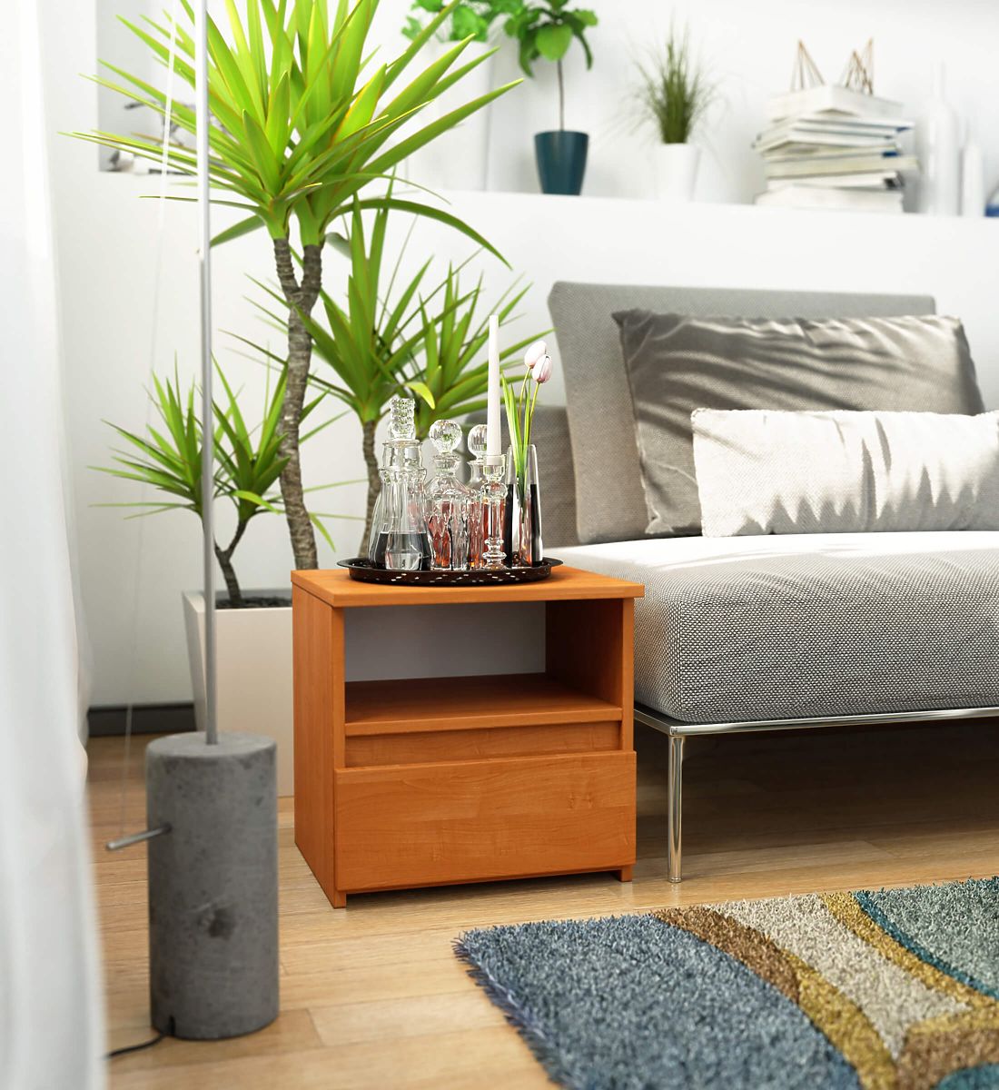 Nachtkonsolen sind eine beliebte Art von Möbeln, die neben dem Bett platziert werden. Auf ihrer Platte befindet sich häufig eine Lampe, während im Inneren Gegenstände aufbewahrt werden, die Entspannung und Schlaf erleichtern. Personen, die eine elegante Kommode suchen, sollten auf die Nachtkonsole CL1 40 cm in der Farbe Erle achten. Sie wird in jedem Schlafzimmer schön zur Geltung kommen. Sie kann auch im Kinderzimmer platziert werden.