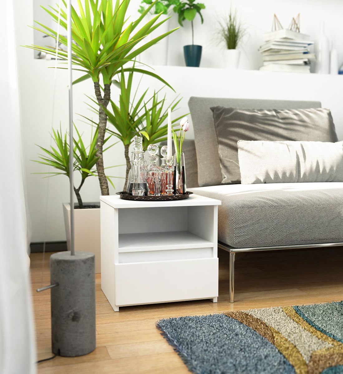 Nachtkonsolen sind eine beliebte Art von Möbeln, die neben dem Bett platziert werden. Auf ihrer Oberfläche befindet sich meist eine Lampe, während im Inneren Gegenstände aufbewahrt werden, die Entspannung und Schlaf erleichtern. Personen, die eine elegante Kommode suchen, sollten auf die Nachtkonsole CL1 40 cm in Weiß achten. Sie wird in jedem Schlafzimmer schön zur Geltung kommen. Sie kann auch im Kinderzimmer platziert werden.