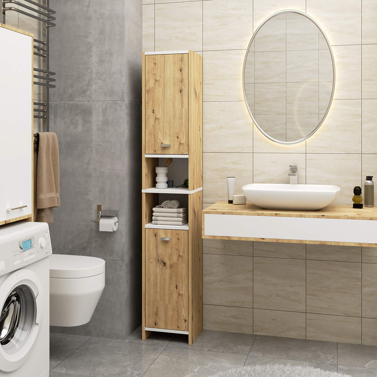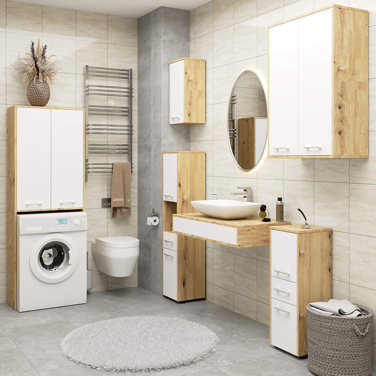 Luka-home.de » Bathroom & Toilet / Badezimmer schränke / BADEZIMMERREGAL BETI 2D 2W EICHE ARTISAN WEISS