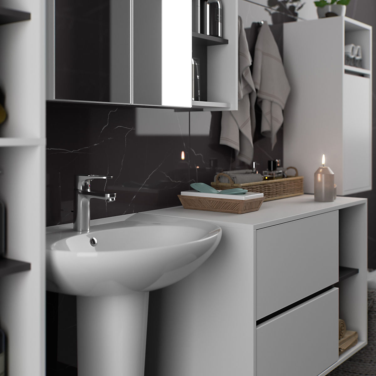Luka-home.de » Badezimmer und Toilette / Badezimmer-Sets / SET HÄNGENDER BADEZIMMERMÖBEL VAMI WEISS / GRAPHITGRAU