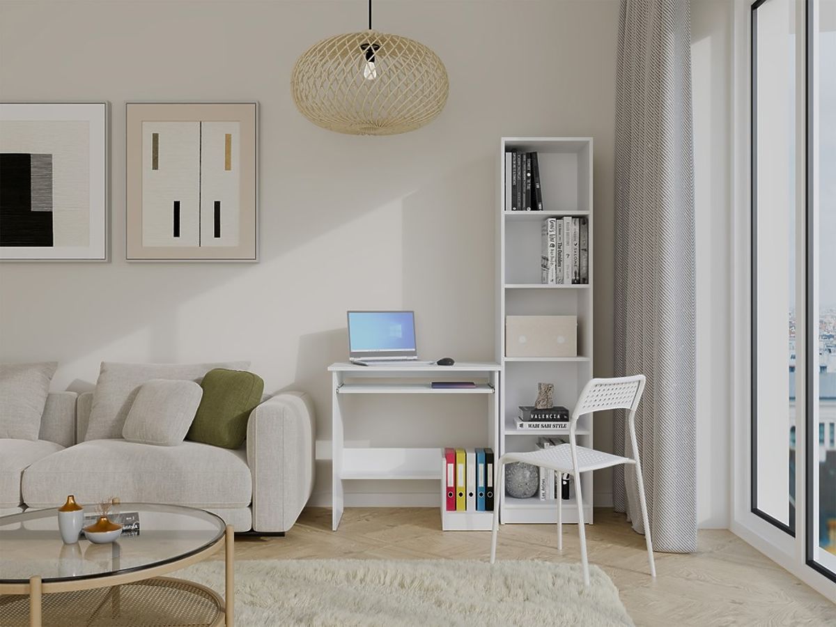 Der Schreibtisch ROSA ist ein kompaktes und zugleich sehr funktionales Möbelstück, das sich hervorragend für kleine Räume eignet - sowohl für Kinder- und Jugendzimmer als auch für das Homeoffice. Dank des minimalistischen Designs und der matten weißen Farbe passt der Tisch ideal in moderne Innenräume und vergrößert optisch den Raum.