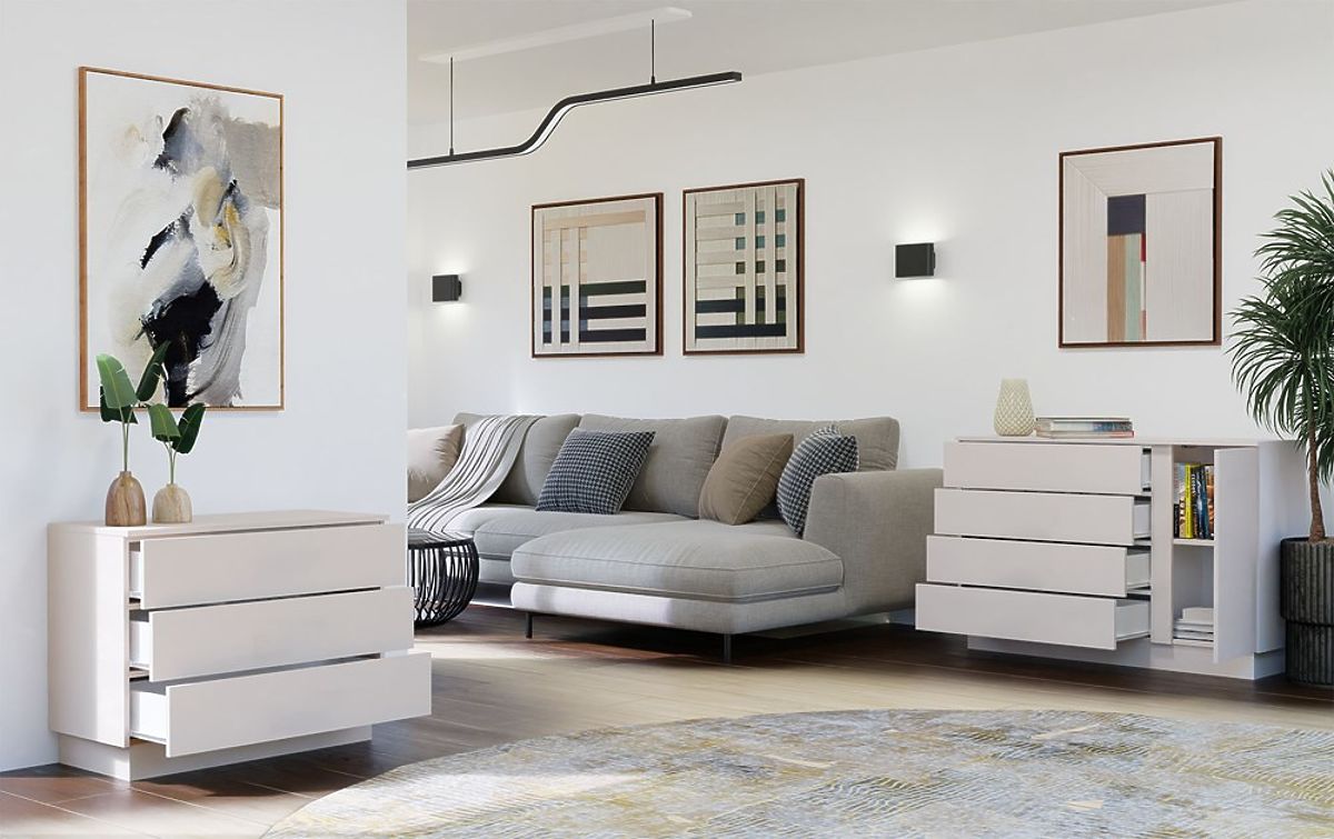 Moderne Kommode AMBER 3S mit 3 Schubladen in Kaschmir Beige. .. mehr