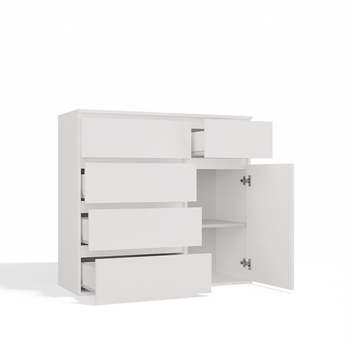• Funktionales Innenleben – 1 Tür, 2 geschlossene Regale und 5 geräumige Schubladen erleichtern die Organisation und Aufbewahrung.