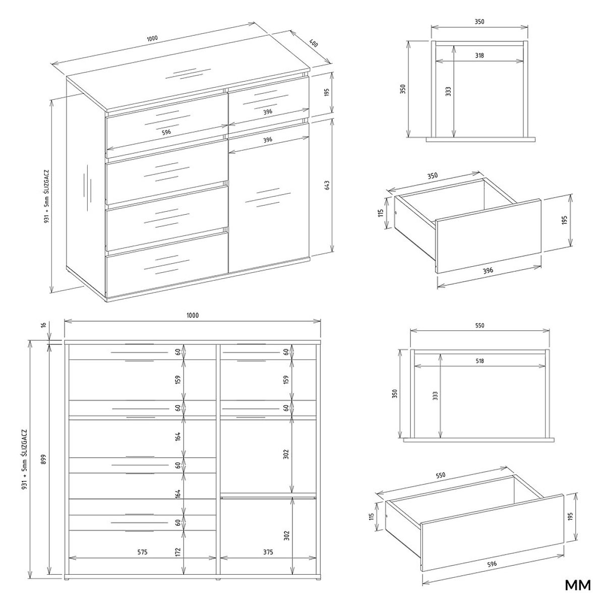 1 TÜR, 5 SCHUBLADEN