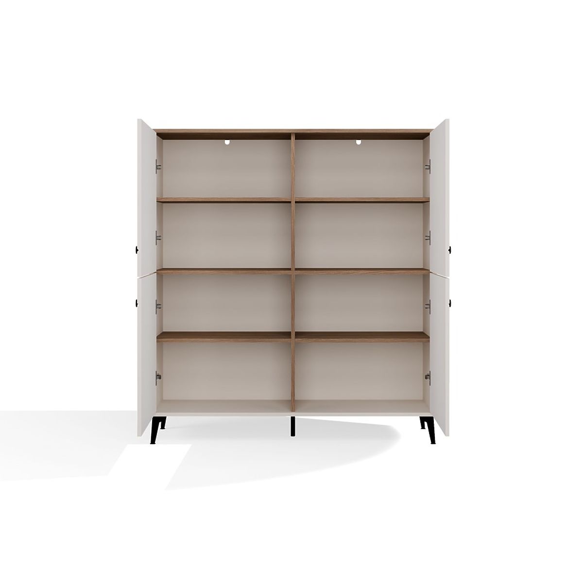 Das Modell ist mit vier Fronten mit Soft-Close-System ausgestattet, hinter denen sich bis zu acht praktische Regale verbergen – ideal zur Aufbewahrung von Büchern, Dokumenten, Textilien oder Alltagsgegenständen.