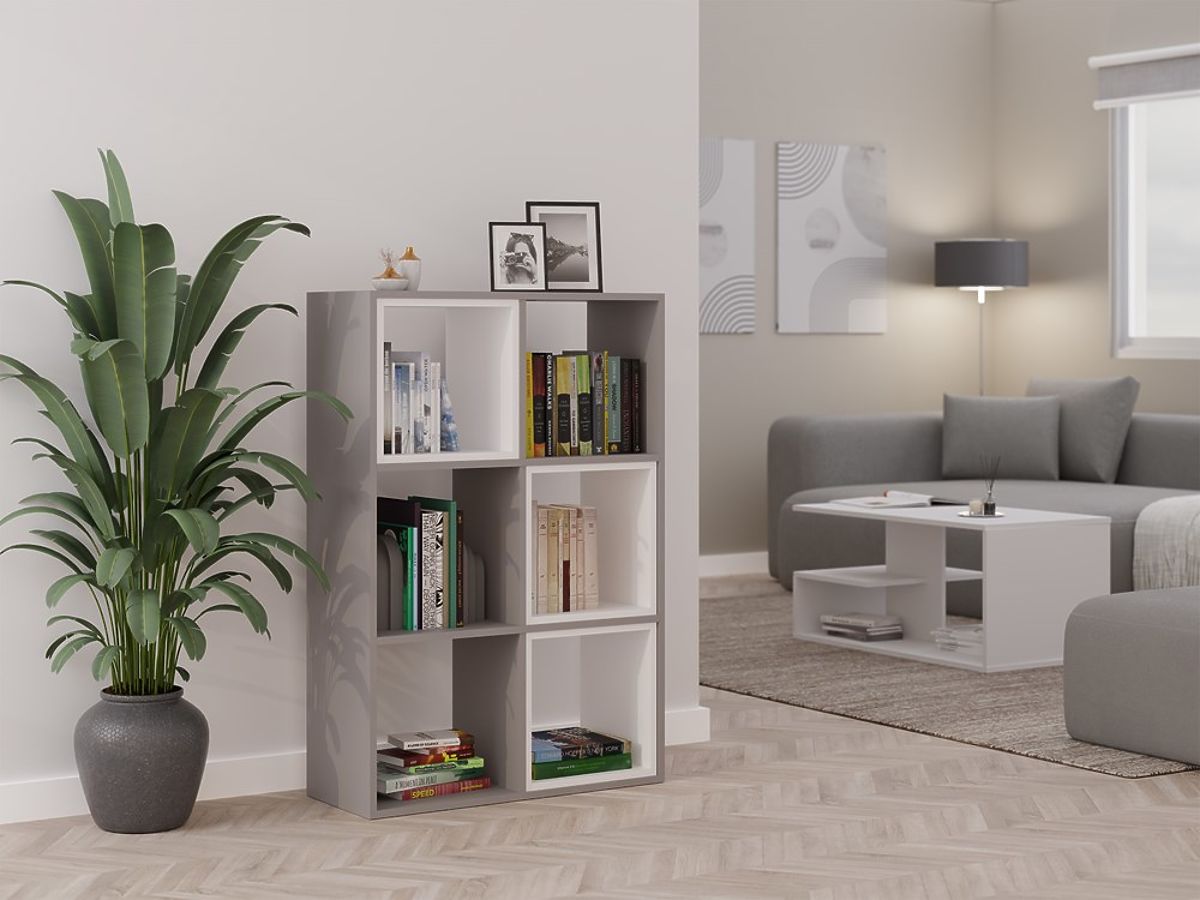 Das Regal MALAX 2X3 vereint modernes Design und Funktionalität und passt perfekt in verschiedene Innenräume. Seine Einfachheit und Eleganz machen es nicht nur zu einem praktischen, sondern auch zu einem ästhetischen Einrichtungselement.
