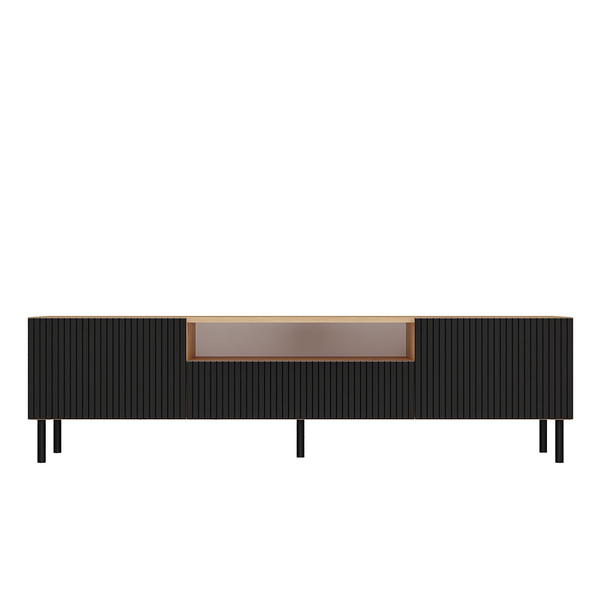 Ein großer Vorteil sind die runden Metallbeine mit einer Höhe von 13 cm, die der gesamten Konstruktion visuelle Leichtigkeit verleihen und die Stabilität des TV-Schranks gewährleisten.