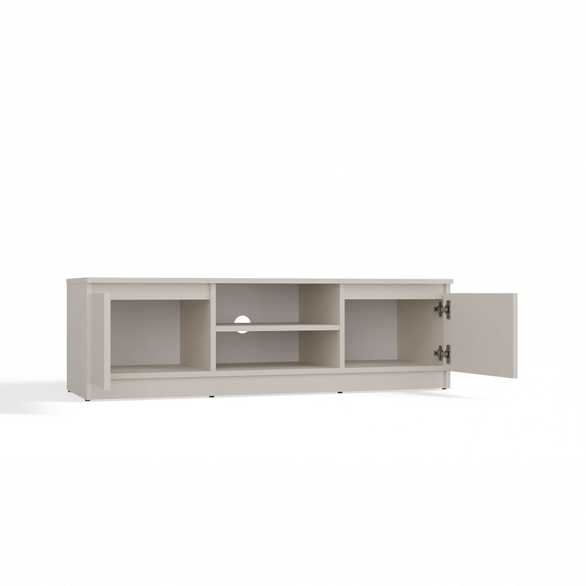 Offenes Regal ermöglicht die bequeme Platzierung von TV-Geräten und eine Öffnung auf der Rückseite erleichtert die diskrete Kabelmontage.