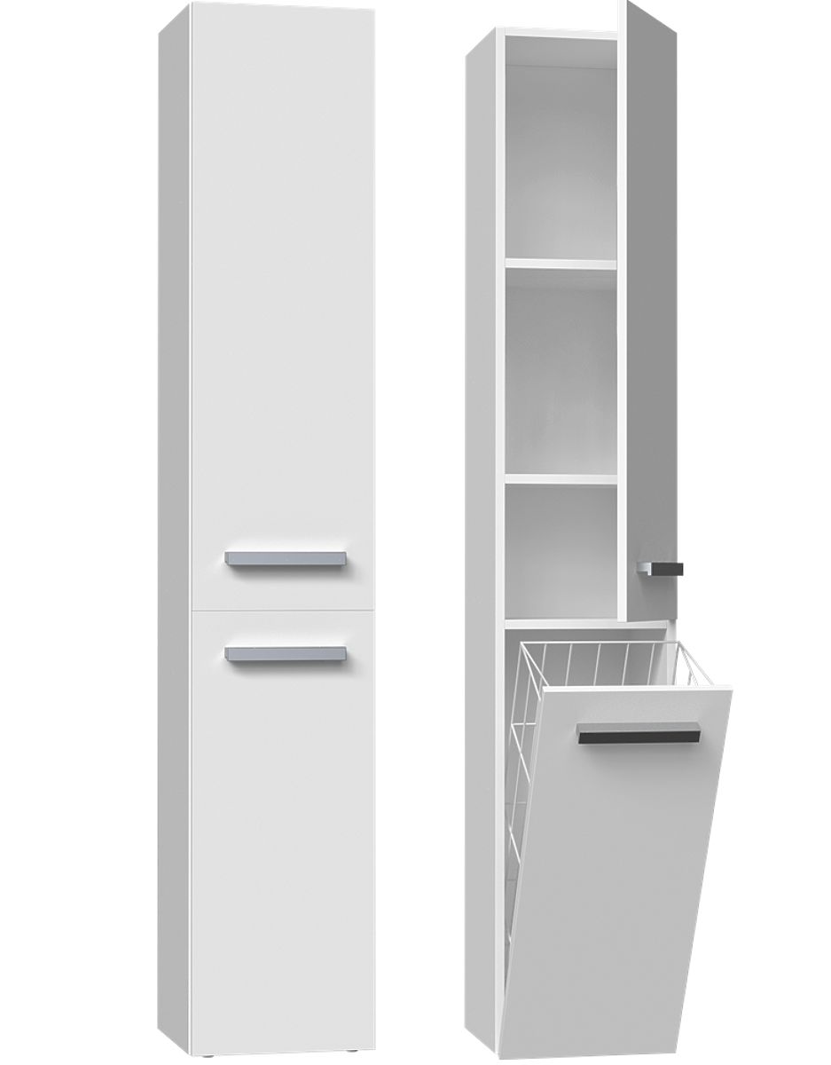 Badezimmerschrank mit mattem weißen Korpus und Fronten. .. mehr