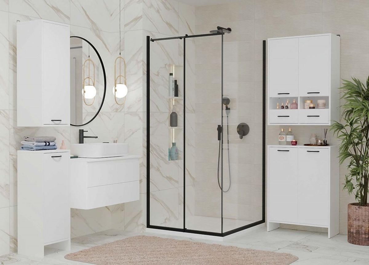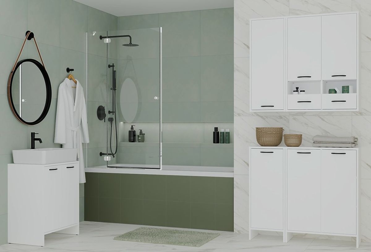Luka-home.de » Bathroom & Toilet / Badezimmer schränke / Badezimmerschrank NINA 1K WEISS 1 Wäschekorb Regal Badezimmerhochschrank