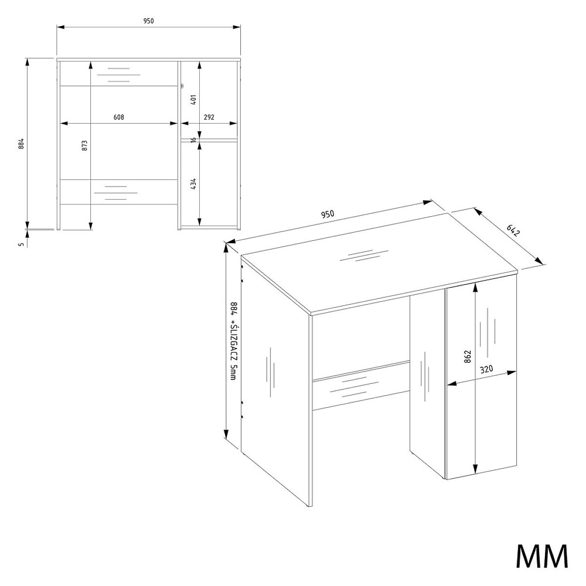 • Korpus und Fronten: laminierte Platte mit 16 mm Stärke – kratz- und feuchtigkeitsbeständig