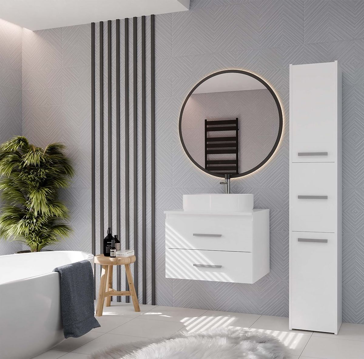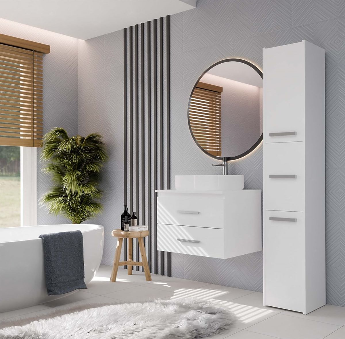 NEL 60 ist ein kompakter und praktischer Badezimmerschrank, der sich hervorragend für moderne Innenräume eignet, sowohl für größere als auch kleinere.