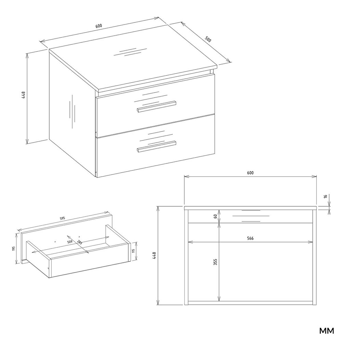 - 2 funktionale Schubladen ohne Ausschnitte – maximale Kapazität, empfohlener Wand-Siphon