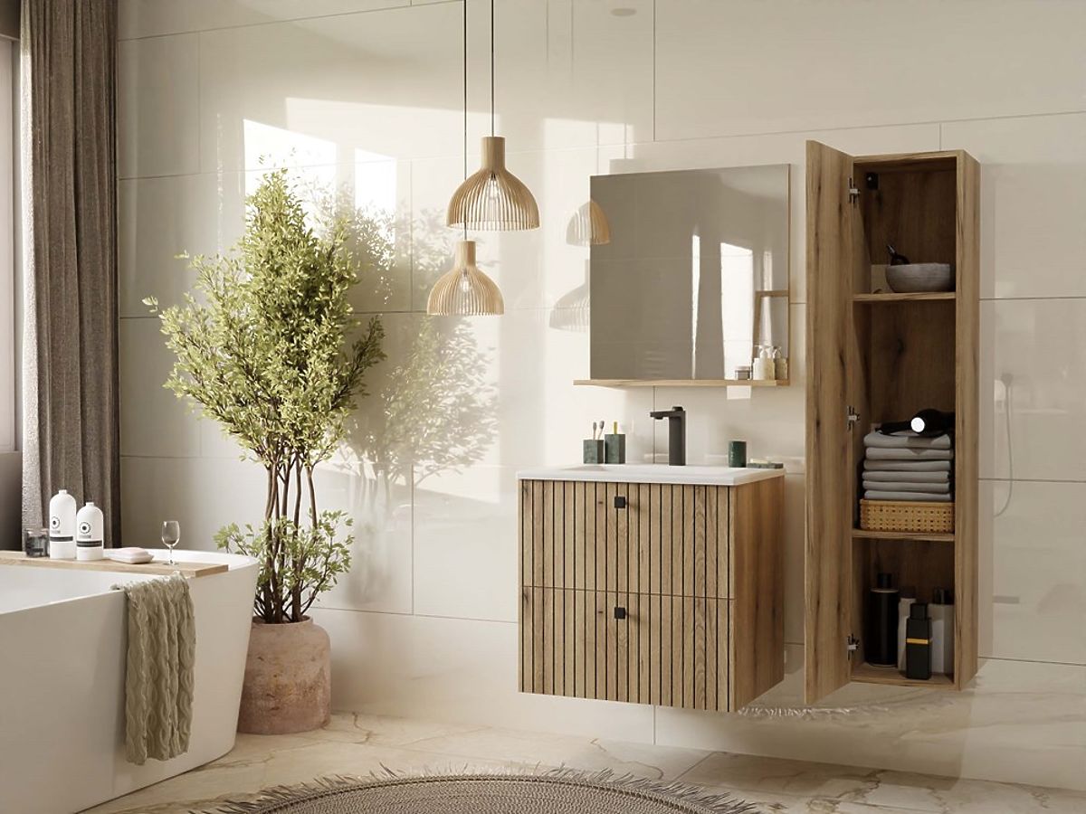 Luka-home.de » Bathroom & Toilet / Badezimmer schränke / HÄNGESCHRANK UNTER WASCHBECKEN TIGO 60 2S EICHE EVOKE 2 SCHUBLADEN GERILLTE FRONTPLATTE