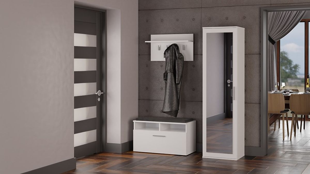 Eleganter Flurschrank DUO mit Spiegel in Weiß. .. mehr