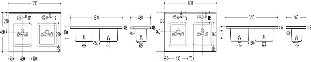 Luka-home.de » Bathroom & Toilet / Spülbecken / Zweikammer-Möbelwaschbecken 120 cm