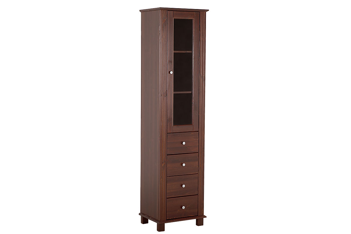 Hoher Schrank mit 1 Tür und 4 Schubladen aus Naturholz. .. mehr