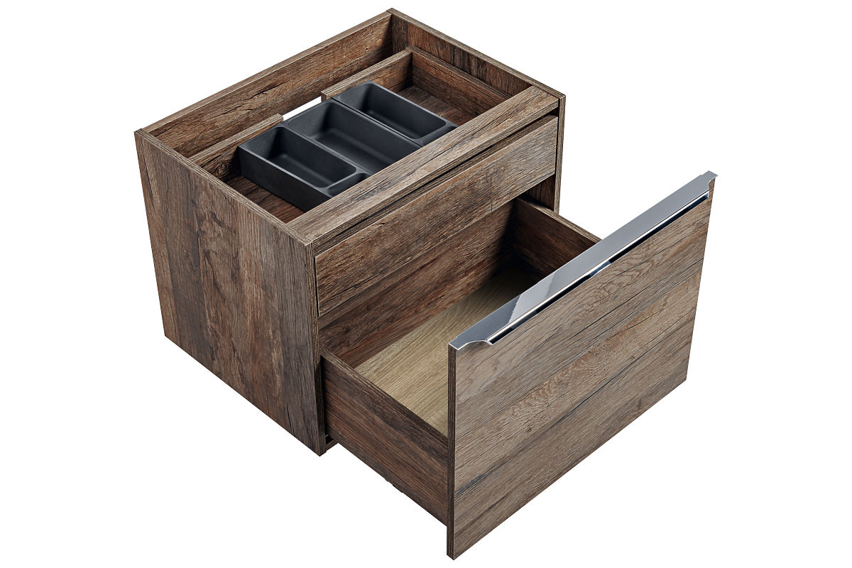 Waschtischunterschrank mit zwei Schubladen und Santa Fe Vintage Eiche Finish. .. mehr
