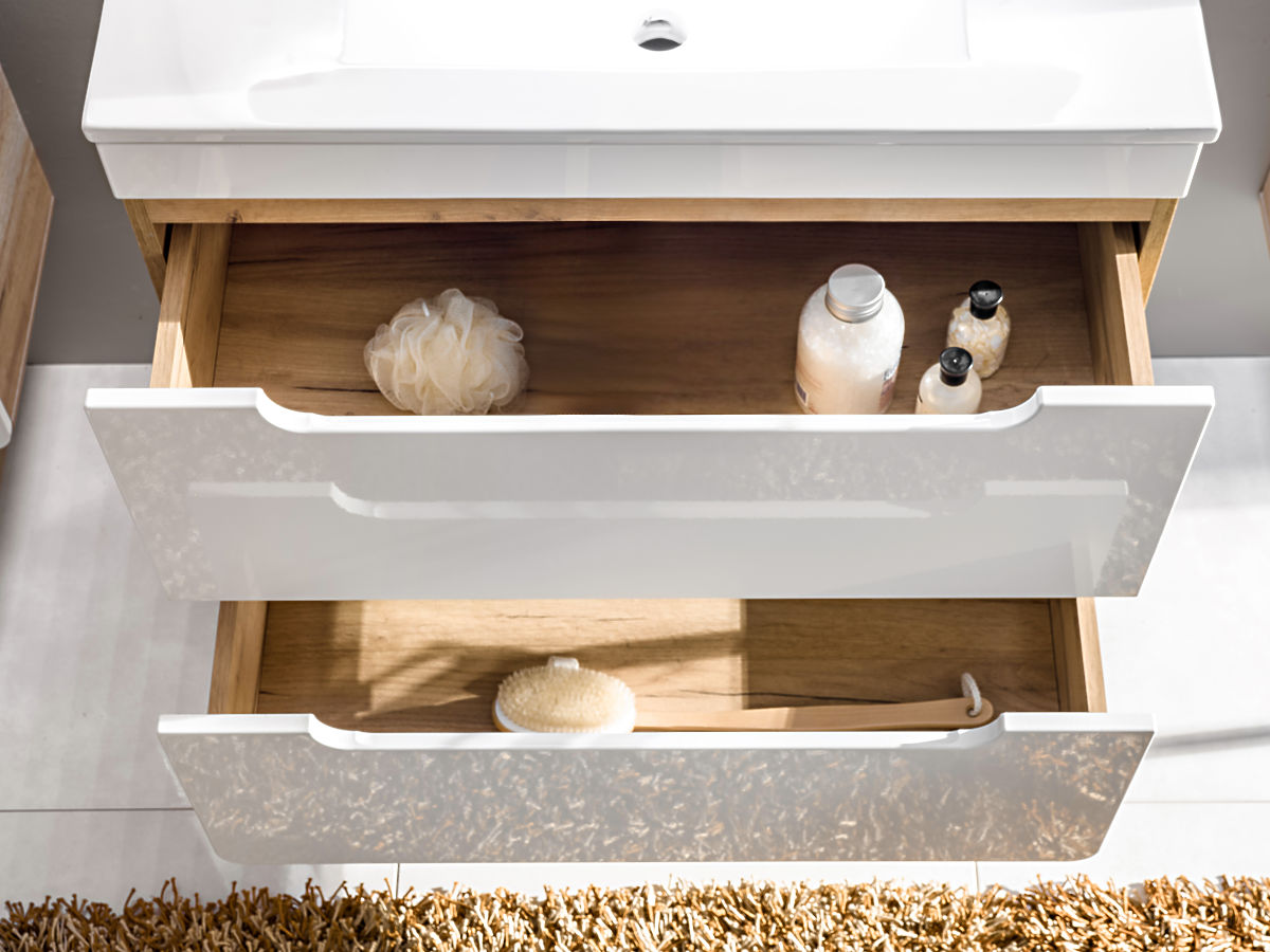 Unterschrank mit zwei Schubladen für Waschbecken, 80 cm breit. .. mehr