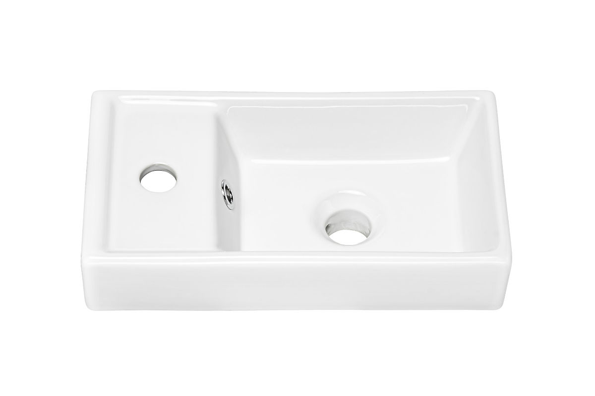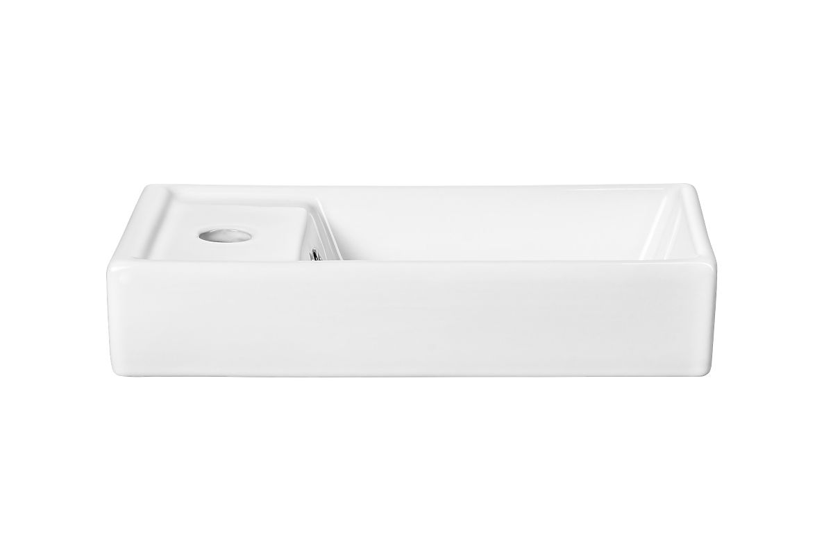 Rechteckiges Einzelkammer-Waschbecken aus Keramik mit Überlauf. .. mehr