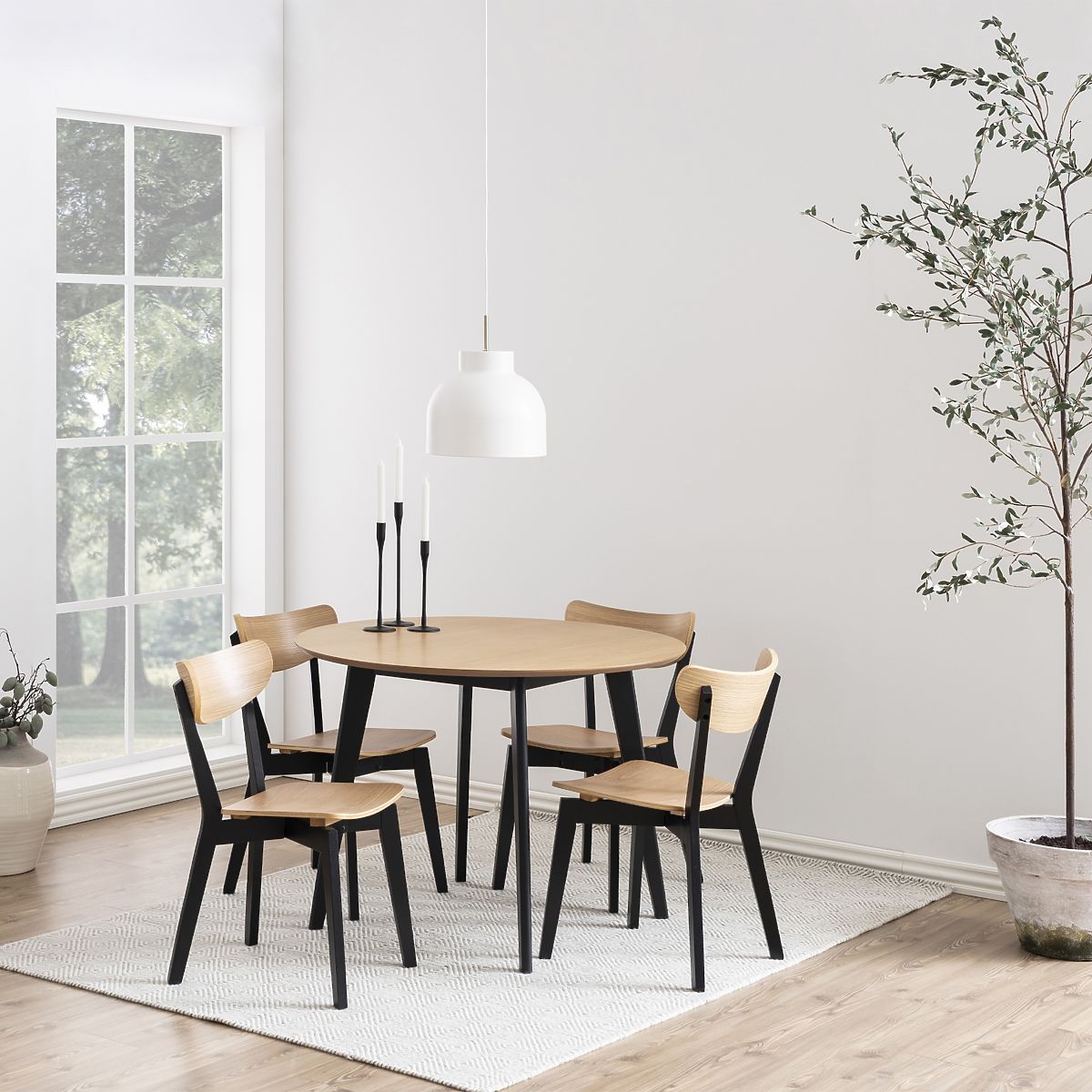 Der Esszimmerstuhl Roxby ist eine ausgezeichnete Wahl für Liebhaber von Naturholz. Dank seines einfachen, aber eleganten Designs passt er hervorragend in die meisten Innenräume. Der Korpus des Roxby-Stuhls besteht aus hochwertigem Gummibaumholz, während Sitzfläche und Rückenlehne aus pflegeleichtem Eichenfurnier gefertigt sind. Diese Materialien machen das Produkt äußerst widerstandsfähig gegen Beschädigungen und verschiedene Arten von Verschmutzungen.