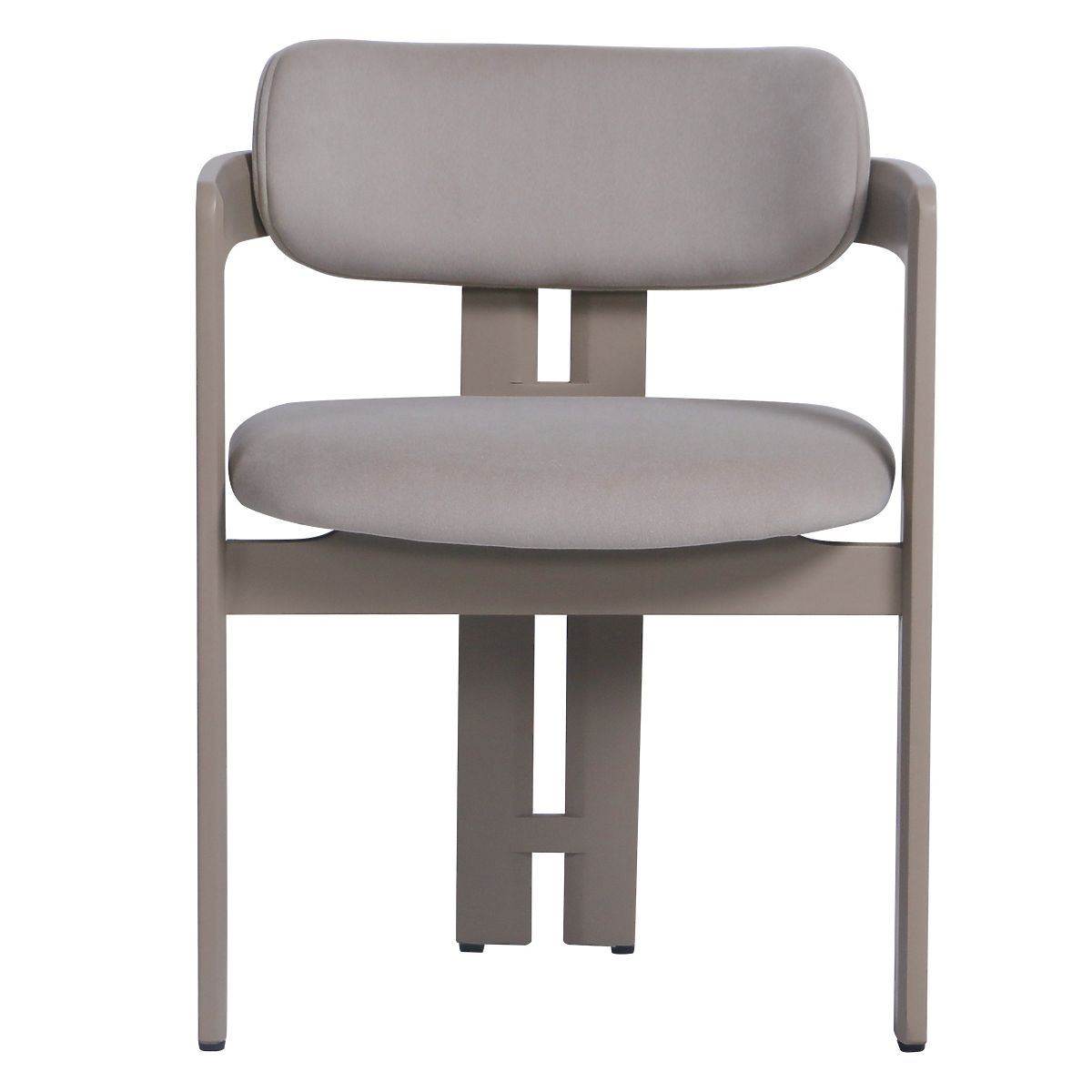 Sitz und Rückenlehne mit beigem Stoff bezogen