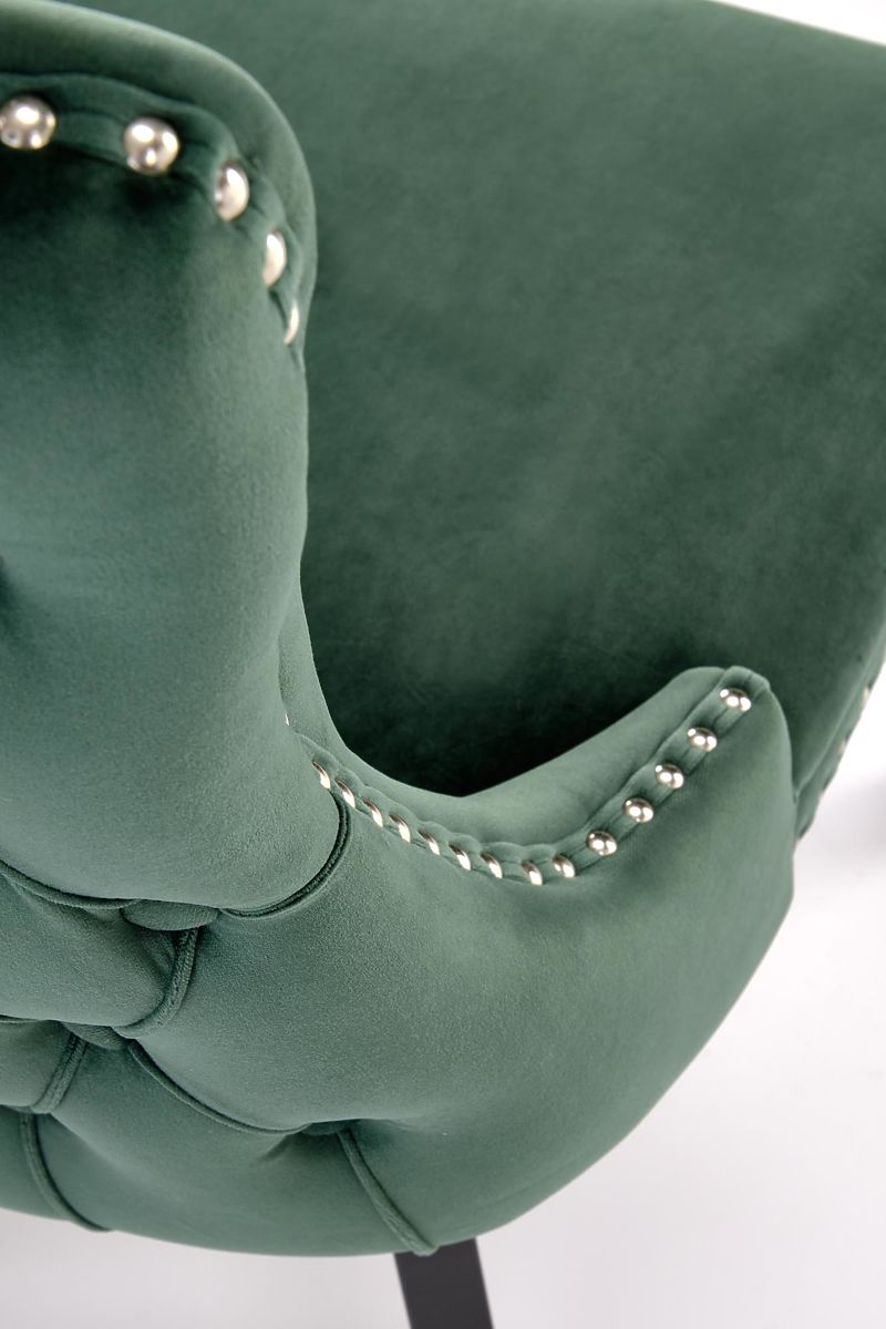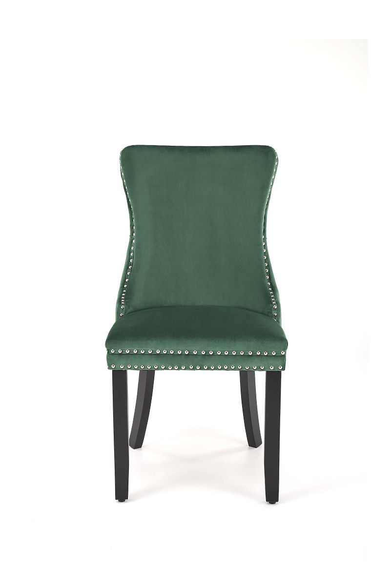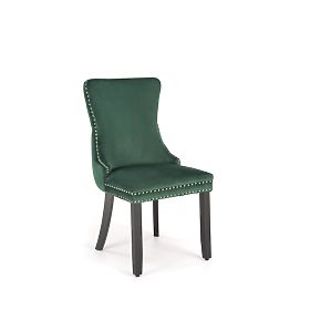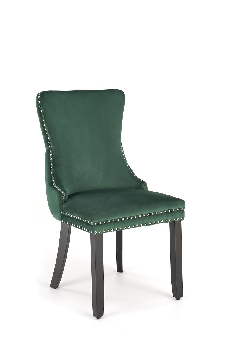 Stuhl aus Massivholz und Samtstoff in dunkelgrün. .. mehr