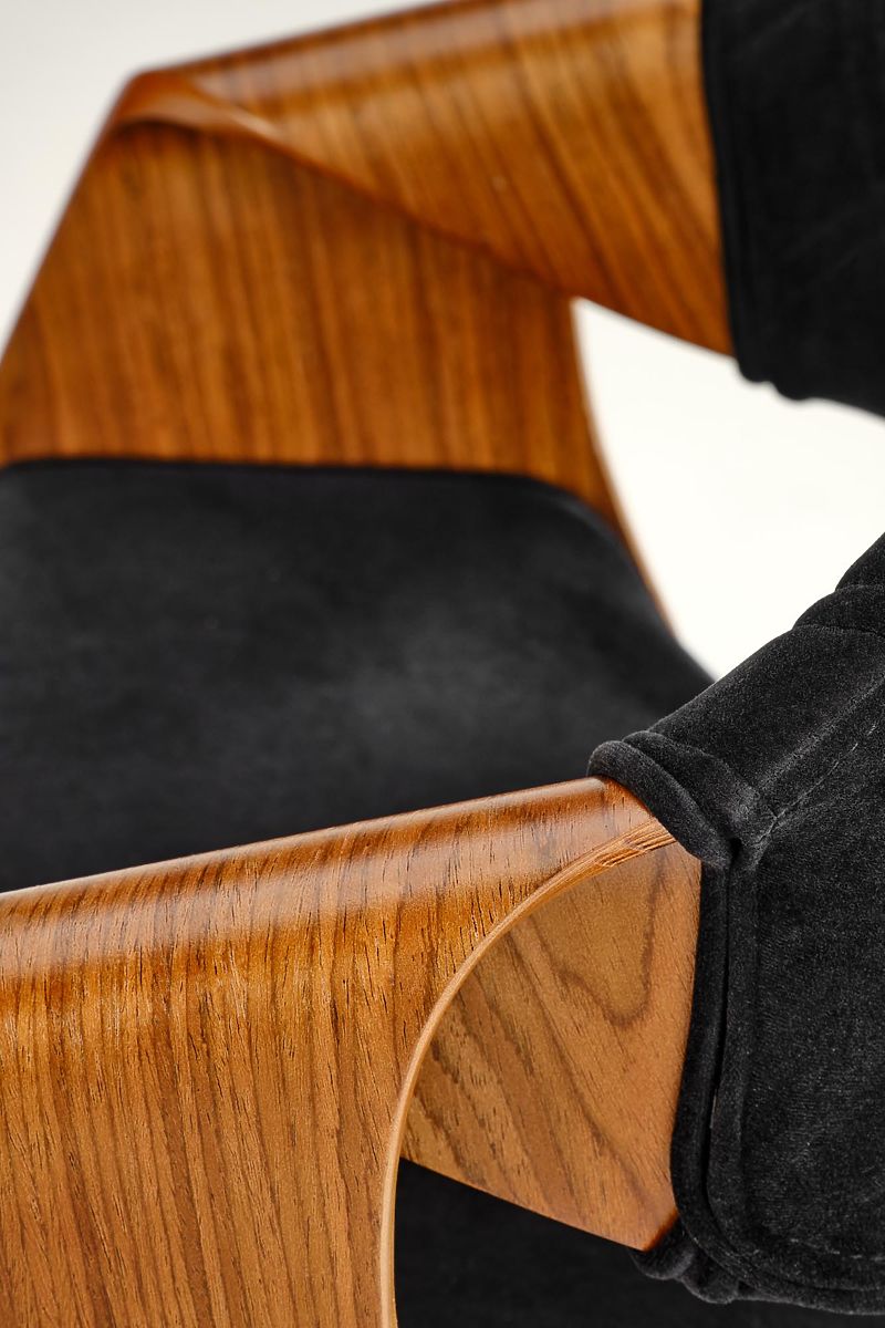 Stuhl aus gebogenem Sperrholz und Samtstoff in Nussbaum und Schwarz. .. mehr