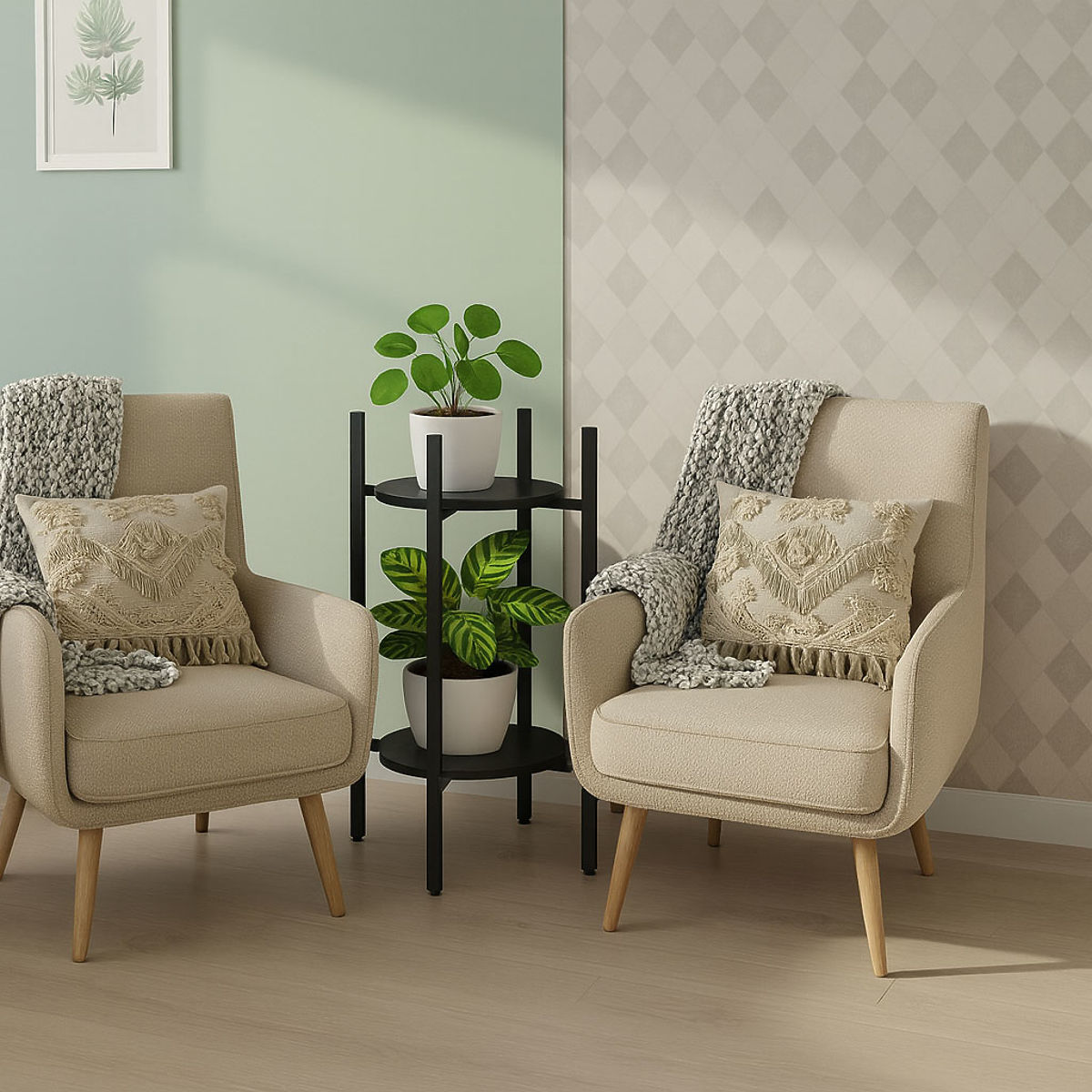 Der Pflanzenständer von ModernHome eignet sich hervorragend für jeden Raum – vom modernen Wohnzimmer bis zum stilvollen Büro. Dank des universellen Designs und der kompakten Abmessungen ermöglicht er eine optimale Raumnutzung und ein effektvolles Arrangieren von Pflanzen. Sie können darauf Kräuter in der Küche, Farne im Flur oder dekorative Pflanzen im Eingangsbereich platzieren. Es ist die perfekte Lösung für diejenigen, die ihrem Umfeld mehr Grün und Eleganz verleihen möchten, um jeden Innenraum zu beleben. Fügen Sie ihn Ihrem Raum hinzu und genießen Sie jeden Tag die Schönheit der Pflanzen.