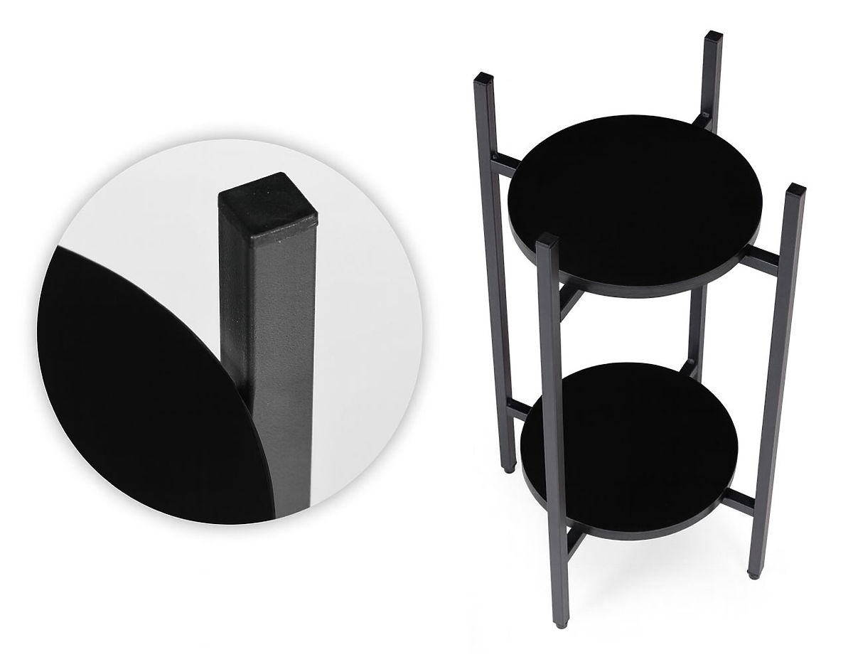 Schwarzer Pflanzenständer mit zwei Ebenen aus pulverbeschichtetem Stahl. .. mehr